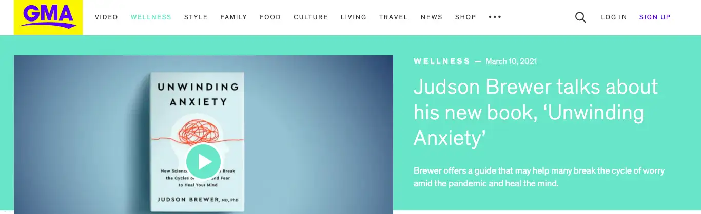 Dr. Jud joined Good Morning America in March 2021 to discuss his New York Times bestselling book Unwinding Anxiety. The appearance came at a time when pandemic-related anxiety had reached historic levels, with millions of Americans struggling with worry, uncertainty, and stress they had never experienced before.