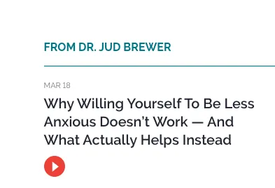 Dr. Jud describes a different path: working with the brain’s own reward-based learning system. When you bring curiosity to what anxiety actually feels like in your body — the tightness, the heat, the restlessness — the brain starts updating its model. It begins to learn that worry and avoidance don’t deliver real rewards, and the anxiety habit loop gradually loosens. This approach has been clinically tested and shown to reduce anxiety significantly in app-based programs.
